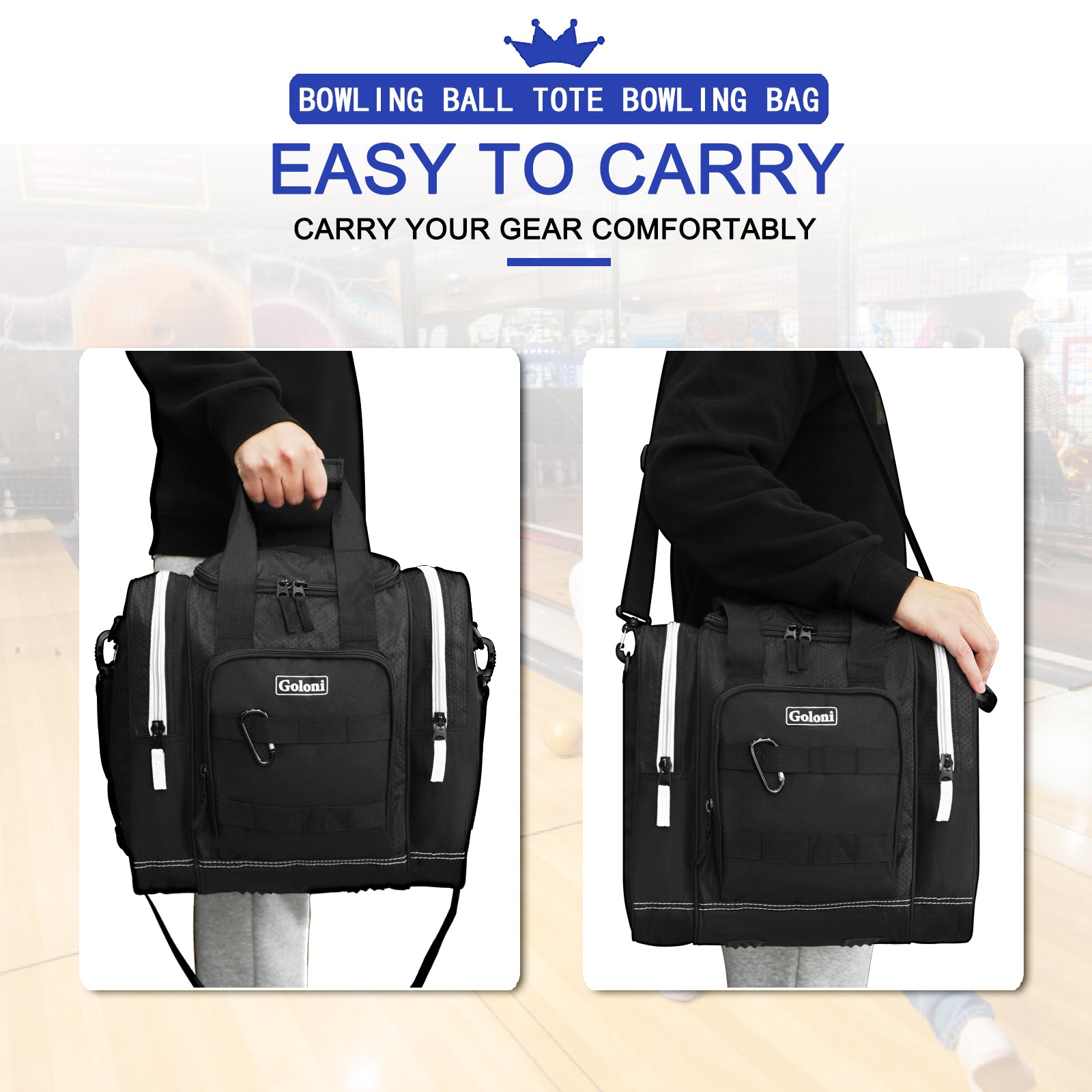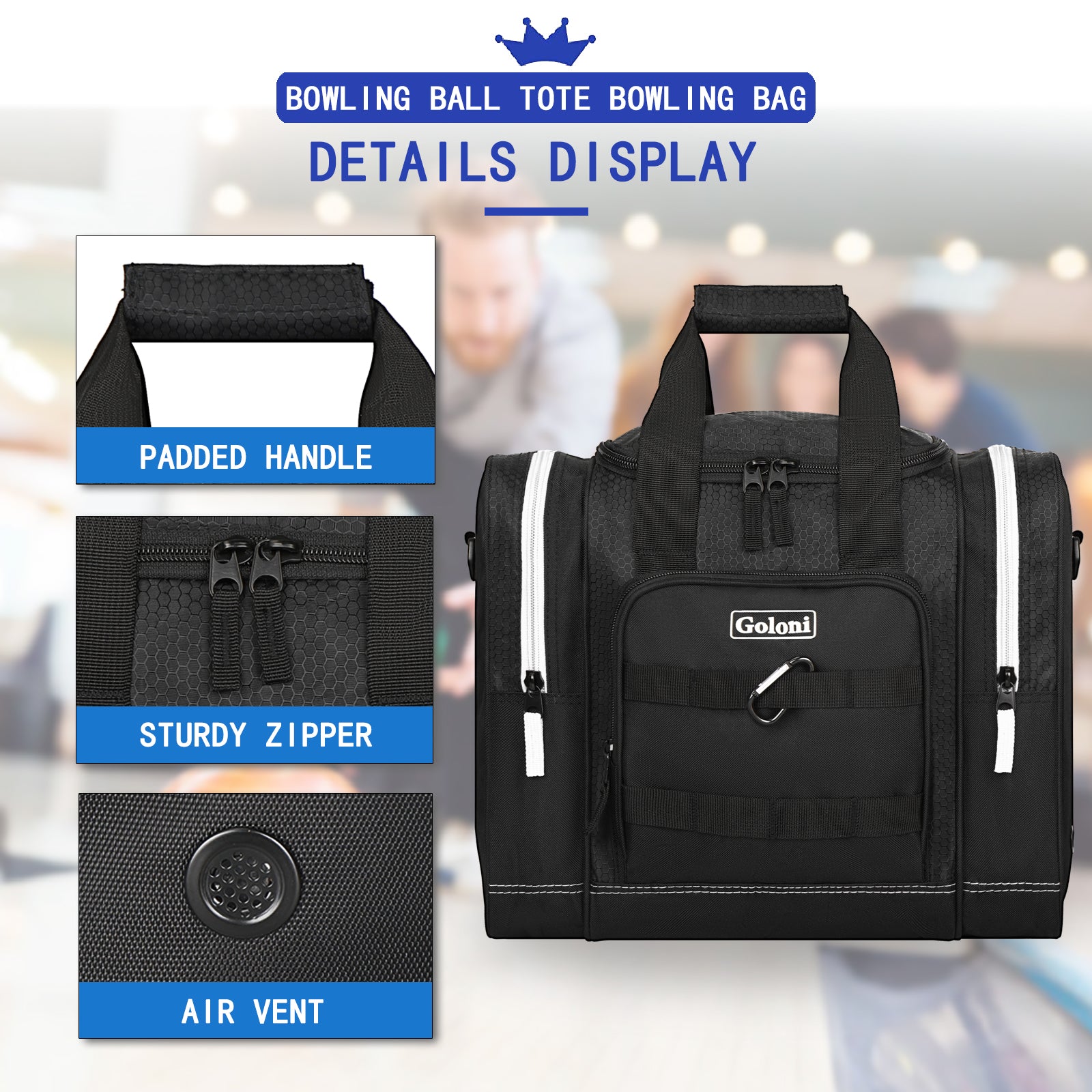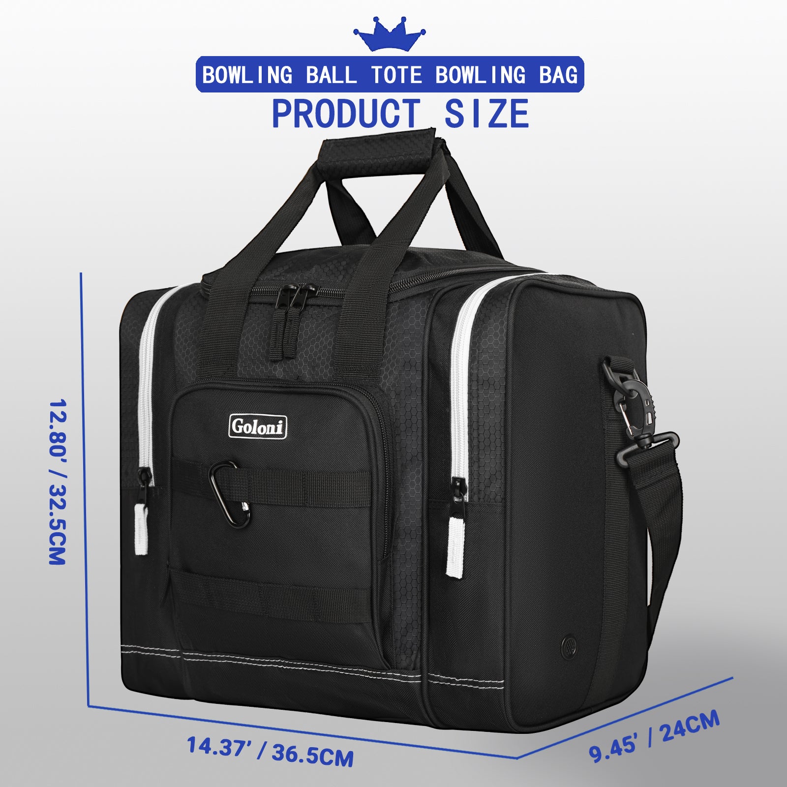 Goloni Bowling Ball Bag for Singer Ball with Padded Ball Holder, 2 Pockets fit Bowling Shoes Up to Mens Size 14 and Accessories