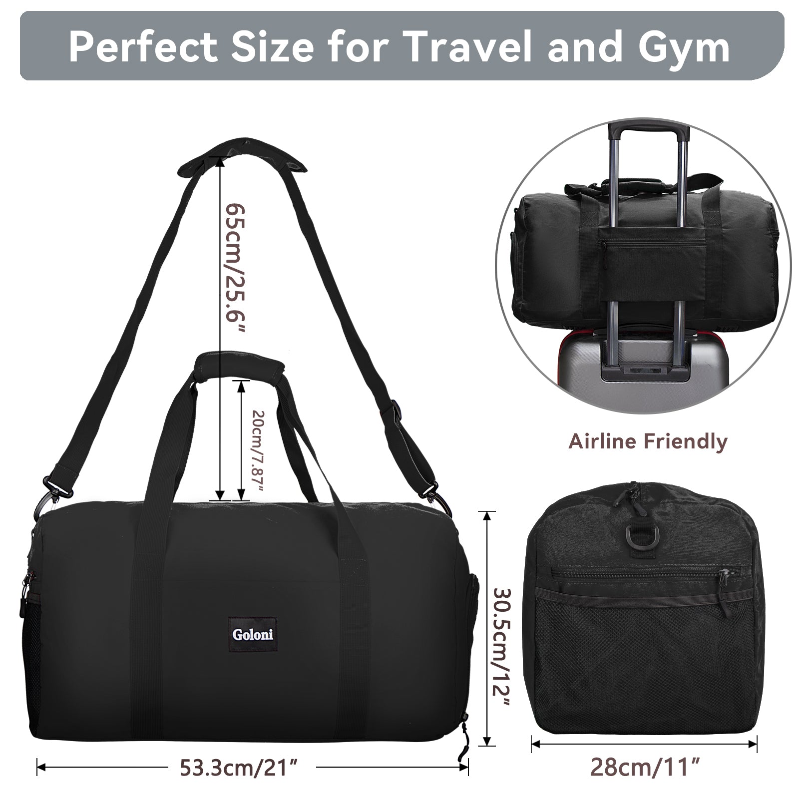 - Large gym bag made of durable fabric to prevent from tears. Bag bottom with 4 pieces rubber patch enhance wear resistance. You can take it to everywhere you want. Lightweight and easy to carry luggage bag for women travel.