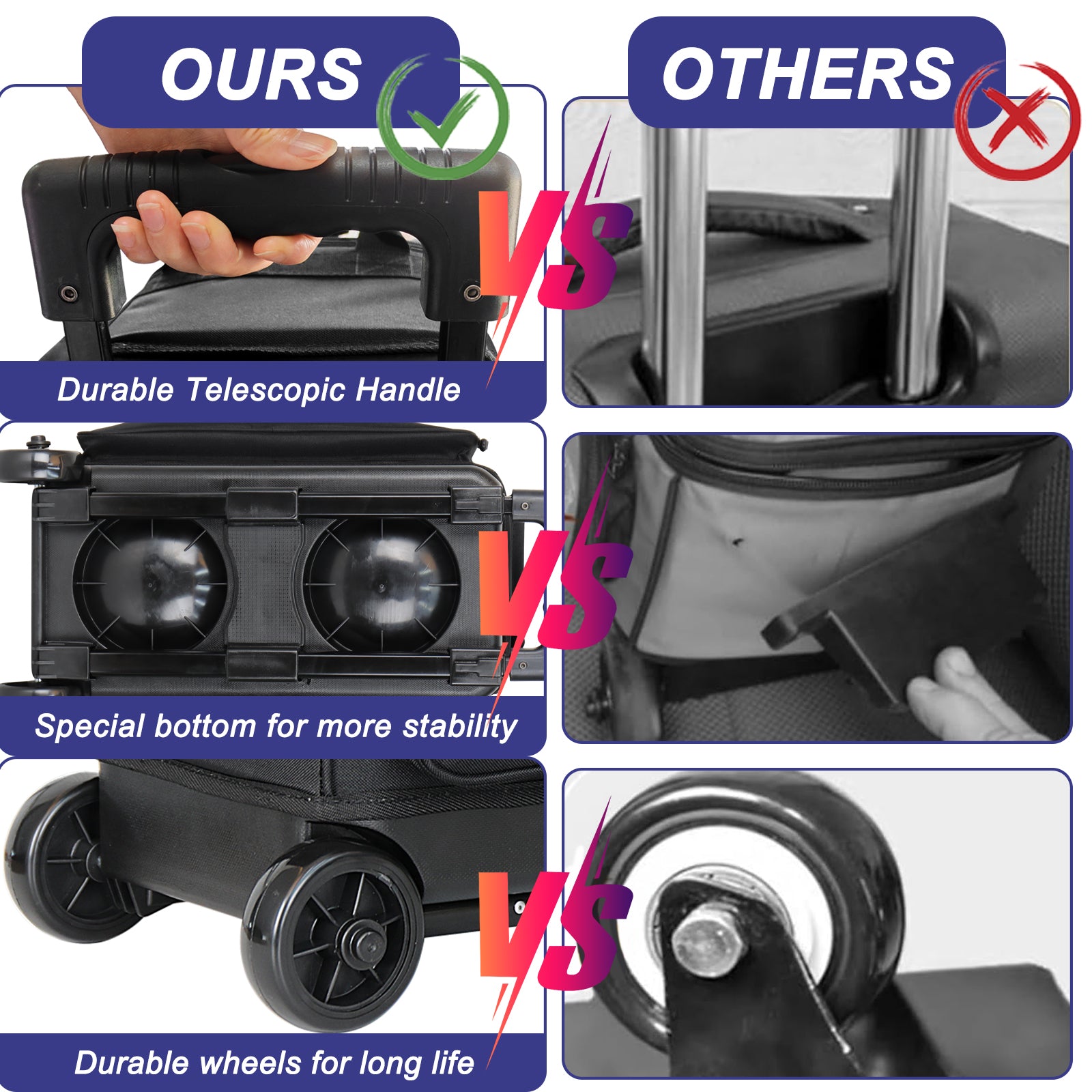 - [Smooth and sturdy wheels] Double bowling ball bagd wheels are large, smooth, and sturdy. After multiple experimental designs, it is possible to maintain silence during use. Whether you're going to a bowling alley or traveling, this bag can make your transportation more convenient.